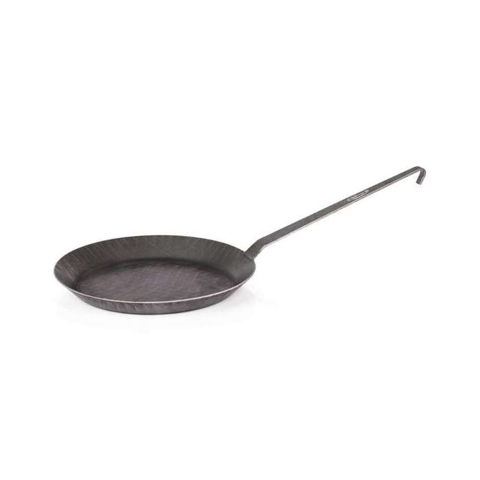 Die schmiedeeiserne Pfanne ist für alle Herdarten und das offene Feuer geeignet.